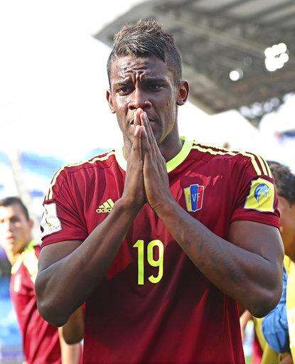 Venezuela's Sergio Cordova celebrates after scoring a goal against Mexico during their Group B soccer match in the FIFA U-20 World Cup Korea 2017 at Suwon World Cup Stadium in Suwon, South Korea, Friday, May 26, 2017. (Kim In-chul/Yonhap via AP) The Associated Press