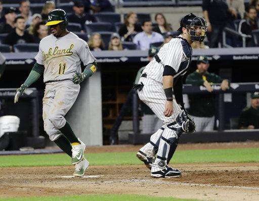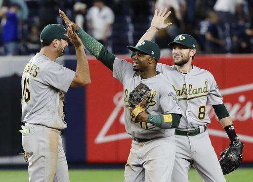 Ryan Madson pitched a perfect eighth. New York loaded the bases with one out in the ninth against Santiago Casilla before Didi Gregorius hit a sacrifice fly and pinch-hitter Gary Sanchez popped out.