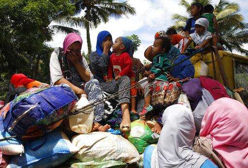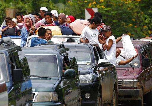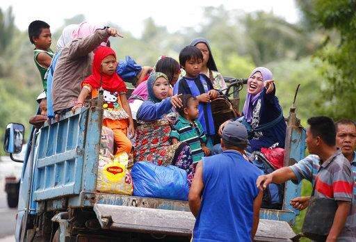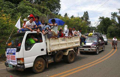 Displaced residents ride a mini-truck with their belongings while fleeing to safer areas as government troops battle with Muslim militants Monday, May 29, 2017 in Marawi, southern Philippines. Philippine forces say they now control most of the southern city where militants linked to the Islamic State group launched a bloody siege nearly a week ago. Presidential Spokesman Ernesto Abella said Monday that only small areas of Marawi are under militants' control. (AP Photo/Bullit Marquez)