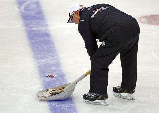 Hockey has a long tradition of objects being thrown on the ice, usually in affection like when fans toss hats to mark hat tricks. There are odd offerings, too, including the time-honored tradition of Detroit Red Wings fans throwing octopi during the playoffs.