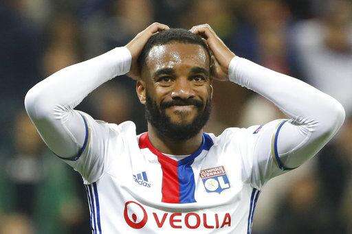 FILE - This is a Thursday, May 11, 2017 file photo, of Lyon's Alexandre Lacazette as he grabs his head after teammate Fakir missed a chance to score during the second leg semi final soccer match between Olympique Lyon and Ajax in the Stade de Lyon, Decines, France. Atletico Madrid’s transfer ban was upheld by the Court of Arbitration for Sport on Thursday June 1, 2017, harming Manchester United’s hopes of signing Antoine Griezmann. The FIFA ban prevents Atletico from registering new players until January. Atletico had lined up Lyon forward Alexandre Lacazette as a potential replacement for Griezmann.(AP Photo/Laurent Cipriani/File) The Associated Press