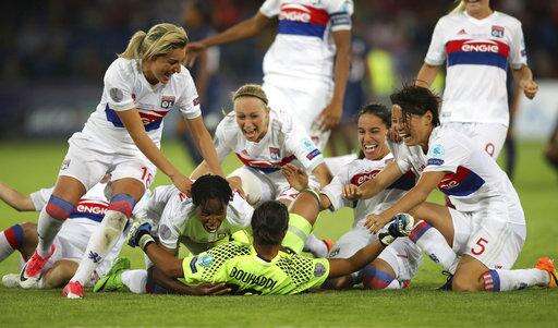 CARDIFF, Wales (AP) - Lyon goalkeeper Sarah Bouhaddi turned goal-scorer to clinch a record-equaling fourth Champions League title for the holders with a penalty shootout victory over Paris Saint-Germain on Thursday.