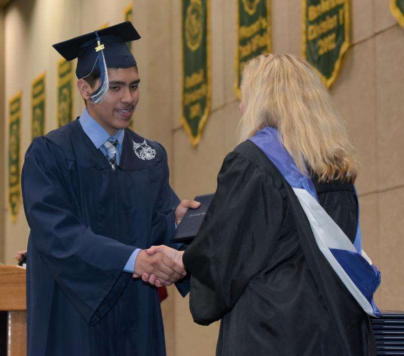 Emily Bono receives her diploma during the West Chicago Community High School graduation on Friday, June 2, at College of DuPage in Glen Ellyn.