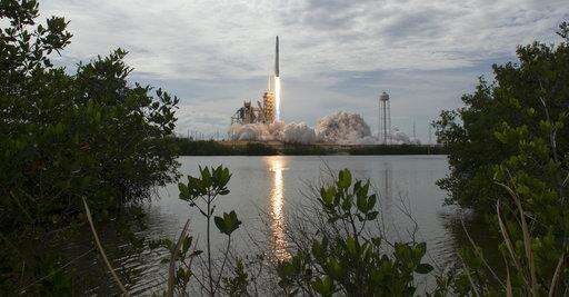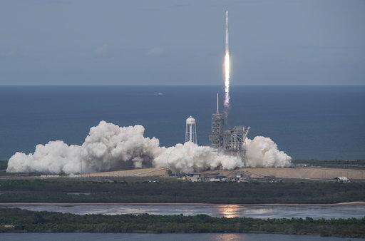 In this photo provided by NASA, the SpaceX Falcon 9 rocket, with the Dragon spacecraft onboard, launches from pad 39A at NASA's Kennedy Space Center in Cape Canaveral, Fla, Saturday, June 3, 2017. SpaceX launched its first recycled cargo ship to the International Space Station on Saturday, yet another milestone in its bid to drive down flight costs. (Bill Ingalls/NASA via AP) The Associated Press