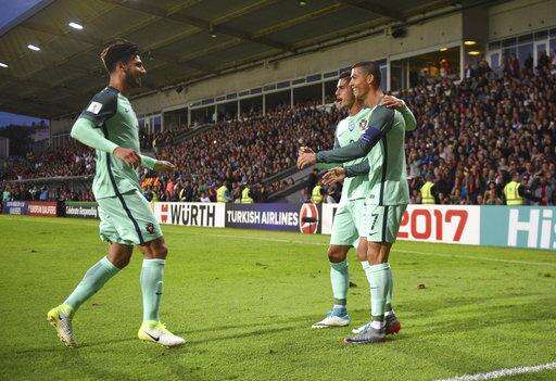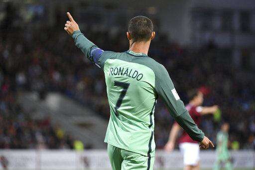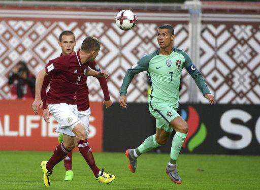 Cristiano Ronaldo continued his good form by scoring two goals and setting up another in Portugal's 3-0 win at Latvia, while Switzerland kept its perfect record after six qualifiers with a 2-0 victory at the Faeroe Islands in the night's other Group B match.