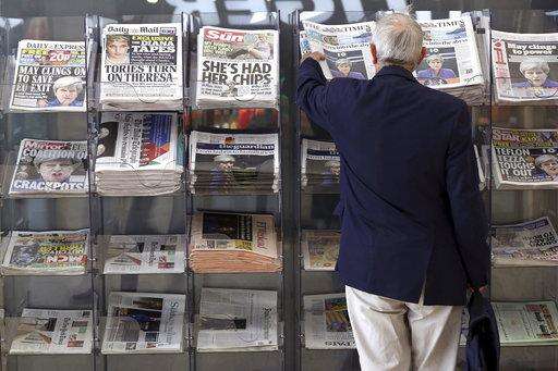 She seems secure for the immediate future, because senior Conservatives don't want to plunge the party into a damaging leadership contest. But Britain's Saturday newspapers agreed she is just clinging on.