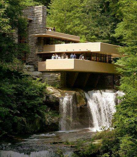 This Aug. 23, 2007 photo shows Fallingwater which was built out over a waterfall in Bear Run, Pa. It is one of architect Frank Lloyd Wright's best-known works. (AP Photo/Keith Srakocic) The Associated Press