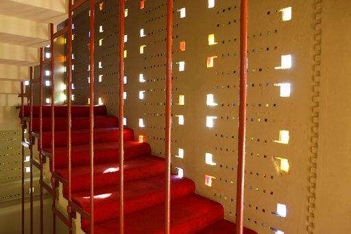 This Jan. 28, 2010 photo shows light flowing through colored glass blocks on the stairwell of the William H. Danforth Chapel at Florida Southern College in Lakeland, Fla. The campus is home to the world's largest single-site collection of Frank Lloyd Wright architecture. (AP Photo/Julie Fletcher) The Associated Press