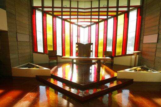 This Nov. 9, 2009 photo shows the interior of Beth Sholom Synagogue, designed by Frank Lloyd Wright, in Elkins Park, Pa. (AP Photo/Matt Rourke) The Associated Press