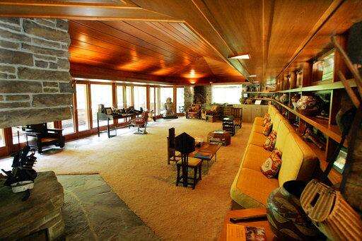 This June 6, 2005 file photo shows the interior of Kentuck Knob, featuring an 18-foot wall that overlooks a sloping hill in Chalk Hill, Pa. The house was built by Frank Lloyd Wright for I.N. Hagan and his wife Bernardine. (AP Photo/Gene J. Puskar) The Associated Press