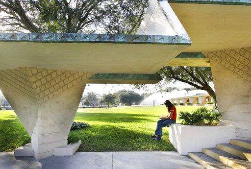 This photo taken Jan. 28, 2010 shows a student studying under the Esplanades covered walkways at Florida Southern College in Lakeland, Fla. The campus is home to the world's largest single-site collection of Frank Lloyd Wright architecture. (AP Photo/Julie Fletcher) The Associated Press