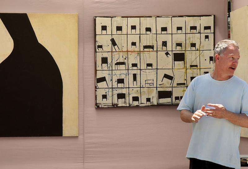 Ezra Siegal of Batavia stands in front of his art work at the Arlington Heights Promenade of Art Saturday downtown. Bob Chwedyk/bchwedyk@dailyherald.com