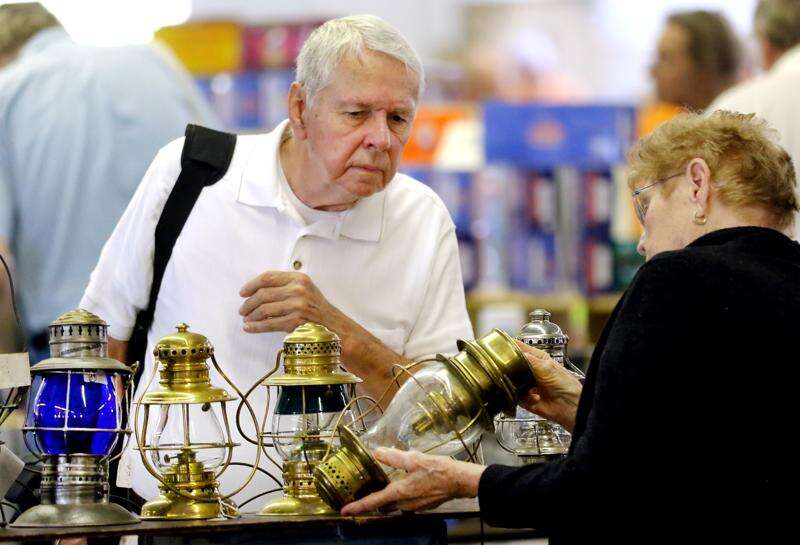 Vernon King of St. Louis looks at some old lamps during the annual Railroad Collectibles Show at the Kane County Fairgrounds in St. Charles on Sunday.