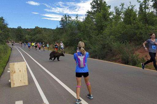 COLORADO SPRINGS, Colo. (AP) - Some runners didn't expect to see a bear on their Colorado race route.