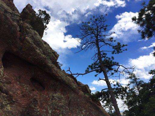 In this May 13, 2017 photo, a tree stretches into the sky on the drive up Flagstaff Mountain in Boulder, Colo. Part of what makes Boulder's 45,000 acres of open space and parkland so spectacular is that it's so accessible. One minute, you're dining, shopping or walking on a city street; five minutes later, you're up in the mountains, surrounded by pine trees, looking down on the city below. (AP Photo/Beth J. Harpaz) The Associated Press