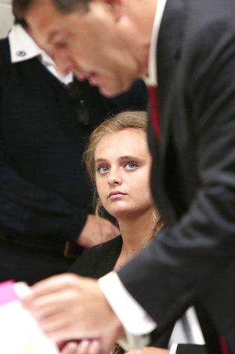 FILE - In this Aug. 24, 2015 file photo, Michelle Carter listens to defense attorney Joseph P. Cataldo argue for an involuntary manslaughter charge against her to be dismissed at Juvenile Court in New Bedford, Mass. Carter is charged with involuntary manslaughter for allegedly pressuring Conrad Roy III, 18, of Fairhaven, Mass., to commit suicide on July 13, 2014. Judge Lawrence Moniz is deliberating Carter's fate following a jury-waived trial that provided a disturbing look at teen depression and suicide. It is not clear when the judge will issue his verdict. (Peter Pereira/The New Bedford Standard Times via AP, Pool, File)