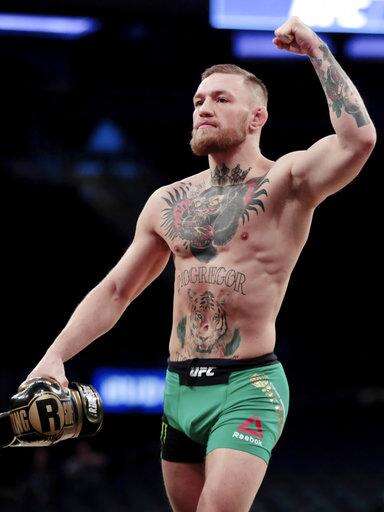 FILE - In this Nov. 9, 2016, file photo, Conor McGregor gestures toward fans while working out at Madison Square Garden in New York. Boxer Floyd Mayweather Jr. said Wednesday, June 14, 2017, he will come out of retirement to face UFC star Conor McGregor in a boxing match on Aug. 26. Mayweather, who retired in September 2015 after winning all 49 of his pro fights, will face a mixed martial arts fighter who has never been in a scheduled 12-round fight at the MGM Grand arena. The fight will take place in a boxing ring and be governed by boxing rules. (AP Photo/Julio Cortez, File) The Associated Press
