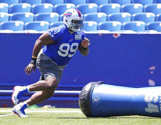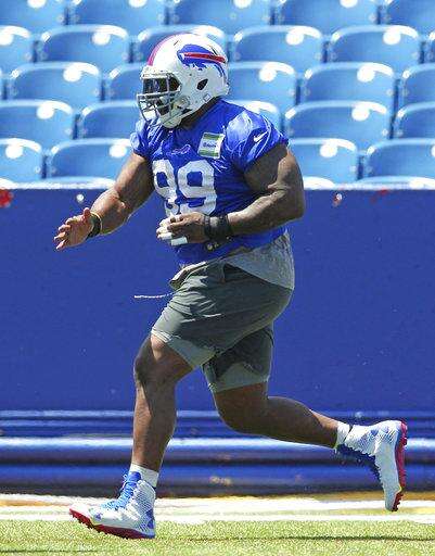 Buffalo Bills defensive tackle Marcell Dareus performs drills during NFL football minicamp in Orchard Park, N.Y., Wednesday, June 14, 2017. (AP Photo/Bill Wippert) The Associated Press