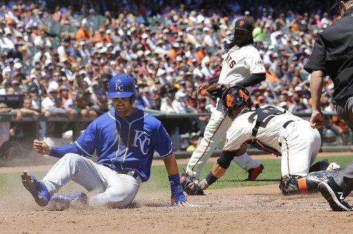 Cueto struggled in his first appearance against his former team since signing with San Francisco after helping Kansas City to the 2015 World Series. He allowed five runs and 10 hits over 5 2/3 innings with three walks and five strikeouts.