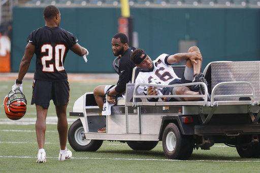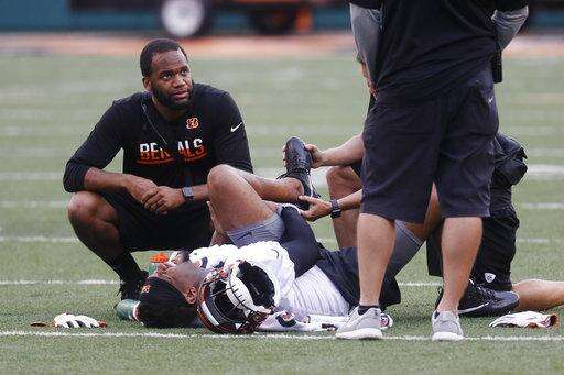 NOTES: Second-year receiver Cody Core hurt his lower left leg on the last play of practice. He was in severe pain on the field, and was taken by cart for X-rays. The Bengals had no update on severity of his injury. Core caught 17 passes for 200 yards as a rookie. ... Heavy rain prompted a 25-minute halt midway through practice. The start of practice on Tuesday also was briefly delayed by rain. ... Top draft pick John Ross participated in conditioning drills but was held out of any activities that would involve using his arms. The receiver is recovering from a torn labrum. ... Cornerback Dre Kirkpatrick participated in drills but not in plays for the second straight day. He's recovering from a hand injury.