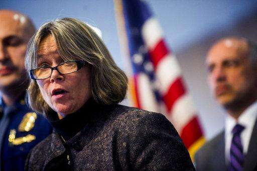 In this Jan. 11, 2016 photo, Dr. Eden Wells, Michigan's chief medical executive, speaks after Gov. Rick Snyder publicly for the first time in Flint, six days after he declared a state of emergency in the city because of health and safety issues caused by lead in the city's drinking water during a news conference. Five people were charged Wednesday, June 14, 2017 with involuntary manslaughter in an investigation of Flint's lead-contaminated water, all blamed in the death of an 85-year-old man who had Legionnaires' disease. Wells, was charged with obstruction of justice and lying to an investigator. (Jake May/The Flint Journal-MLive.com via AP)