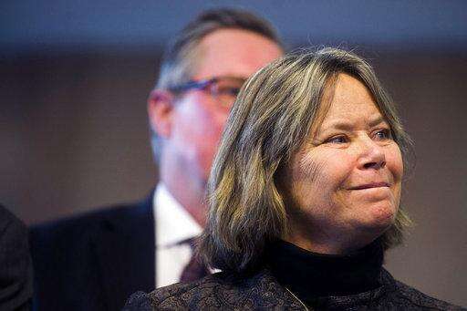 In this Jan. 11, 2016 photo, Dr. Eden Wells, Michigan's chief medical executive, smiles as she listens to Gov. Rick Snyder speak publicly for the first time in Flint, six days after he declared a state of emergency in the city because of health and safety issues caused by lead in the city's drinking water during a news conference. Five people were charged Wednesday, June 14, 2017 with involuntary manslaughter in an investigation of Flint's lead-contaminated water, all blamed in the death of an 85-year-old man who had Legionnaires' disease. Wells, was charged with obstruction of justice and lying to an investigator. (Jake May/The Flint Journal-MLive.com via AP)