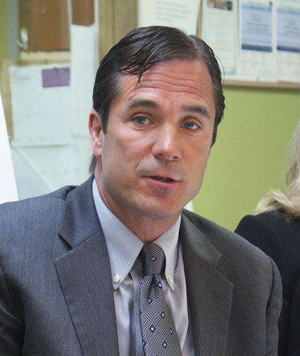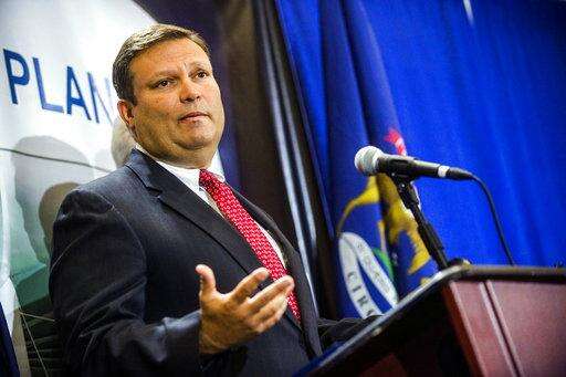 In this June 5, 2017 photo, Nick Lyon, Michigan Health and Human Services Director, speaks in support of the state's Medicaid expansion program in Lansing, Mich. Lyon was charged Wednesday, June 14, 2017, with involuntary manslaughter in a criminal investigation of Flint's lead-contaminated water. (AP Photo/David Eggert)