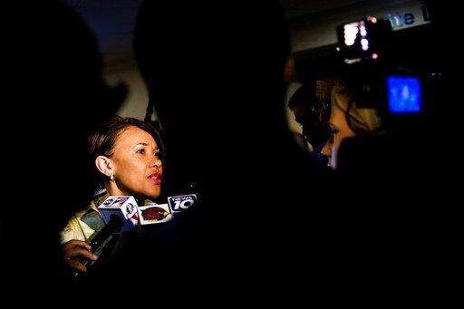 Flint City Mayor Karen Weaver speaks to media after Michigan Attorney General Bill Schuette announced five water officials, including the head of Michiganâs health department, were charged Wednesday, June 14, 2017, with involuntary manslaughter in an investigation of Flintâs lead-contaminated water, all blamed in the death of an 85-year-old man who had Legionnairesâ disease, at the Riverfront Banquet Center in downtown Flint, Mich. (Jake May /The Flint Journal-MLive.com via AP)