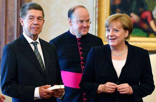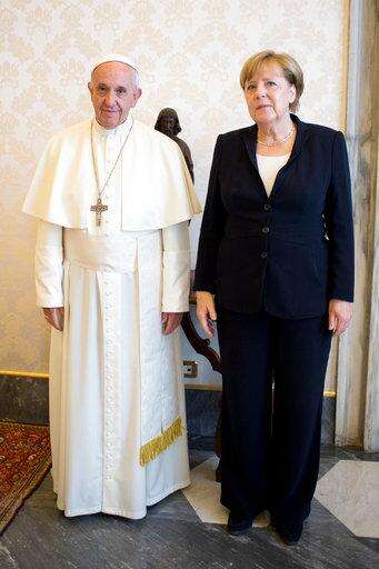 Merkel said Francis encouraged her to fight for international agreements, including the 2015 Paris climate accord, which aims to curb heat-trapping emissions.