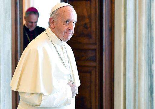 Pope Francis looks on after his private audience with German Chancellor Angela Merkel, at the Vatican, Saturday, June 17, 2017. (Ettore Ferrari/Pool Photo via AP)