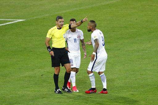 FIFA wants to keep fans in the loop by showing slow motion images on stadium giant screens. Vidal angrily directed the referee - relying on his three video assistant referees (VARs) to interpret images he was not watching - to check them himself.