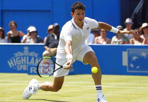 Milos Raonic of Canada plays a return to Thanasi Kokkinakis of Australia during day two of the Queen's Club tennis tournament in London, Tuesday, June 20, 2017. (AP Photo/Kirsty Wigglesworth) The Associated Press