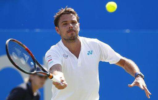 Stan Wawrinka of Switzerland plays a return to Feliciano Lopez of Spain during day two of the Queen's Club tennis tournament in London, Tuesday, June 20, 2017. (AP Photo/Kirsty Wigglesworth) The Associated Press