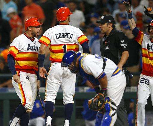 In the seventh, Springer singled with one out and Reddick reached on catcher's interference. Carlos Correa's two-out single loaded the bases. McCann followed with a drive to right that Mitch Haniger briefly had in his glove on the diving attempt as he raced toward the line, but the ball popped free as he hit the ground.