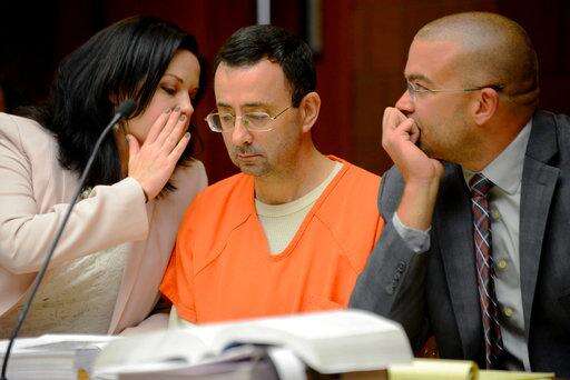 FILE - In this May 26, 2017, file photo, defense attorney Shannon Smith talks to her client, Dr. Larry Nassar, during the second portion of his preliminary hearing on sexual assault at the 55th District Court in Mason, Mich. USA Gymnastics needs to undergo a “complete cultural change” to become better equipped at protecting athletes from abuse according to an independent review of the embattled organization’s practices. USA Gymnastics ordered the review last fall following a series of civil of lawsuits filed against the organization and the former team doctor by a pair of gymnasts who claim the physician sexually abused them during their time on the U.S. national team.(Julia Nagy/Lansing State Journal via AP, File) The Associated Press