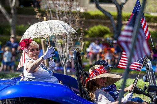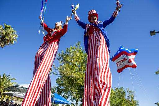 Decked out in red, white and blue, Californians waved flags and sang patriotic songs at Independence Day parades across the state.
