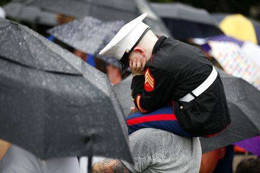 Rain threatened the event on the South Lawn but cleared up as Trump stepped out to address the crowd from a balcony. The Republican president pledged his "unwavering support" and told the crowd that he will "always have your back."