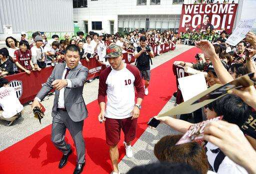 KOBE, Japan (AP) - Japanese club Vissel Kobe rolled out the red carpet for German striker Lukas Podolski on Thursday, hoping the high-profile signing will improve their fortunes in the J-League.