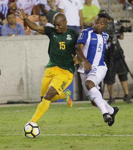 French Guiana midfielder Florent Malouda (15) controls the as Honduras defenseman Ever Alvarado (5) challenges him during a CONCACAF Gold Cup soccer match Tuesday, July 11, 2017, in Houston. The match ended in 0-0 tie. (AP Photo/David J. Phillip) The Associated Press