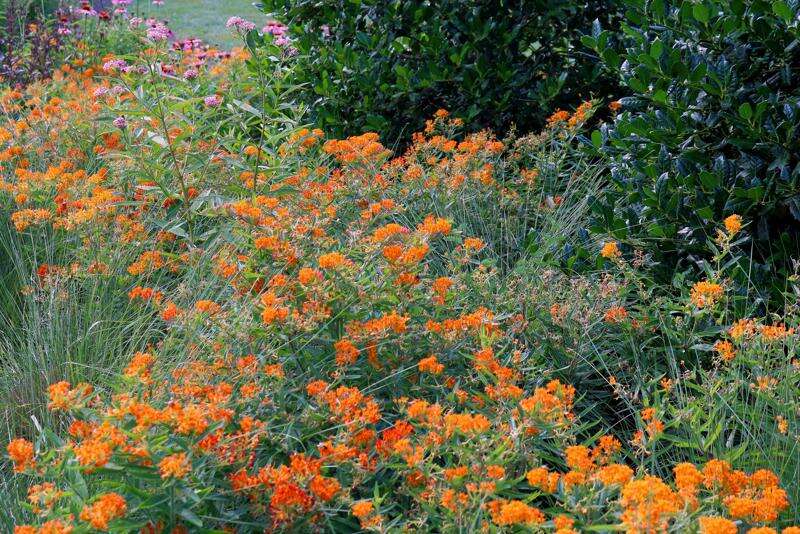 • Butterfly weed is shorter, struggling to reach much more than 2 feet tall. It is easy to grow in full sun in average to dry soil. Bright orange flowers glow in the garden all summer long.