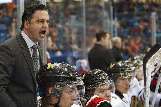 FILE - In this May 20, 2013, file photo, Portland Winterhawks head coach Travis Green attempts to get the attention of officials during the third period against the London Knights in Memorial Cup action in Saskatoon, Saskatchewan. Three of the six NHL coaching vacancies this offseason were filled by first-timers as teams look to find the next new idea rather than recycling the past. (AP Photo/The Canadian Press, Liam Richards, File) The Associated Press