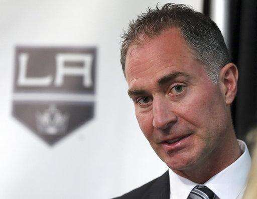 FILE - In this April 24, 2017, file photo, John Stevens talks with reporters following his introduction as the the Los Angeles Kings new head coach at a news conference at the NHL hockey club's home at Staples Center in Los Angeles. Three of the six NHL coaching vacancies this offseason were filled by first-timers as teams look to find the next new idea rather than recycling the past. Only Dallas' Ken Hitchcock could be considered experienced, while Arizona's Rick Tocchet has less than two full seasons of experience and Los Angeles' John Stevens parts of four years. (AP Photo/Reed Saxon, File) The Associated Press