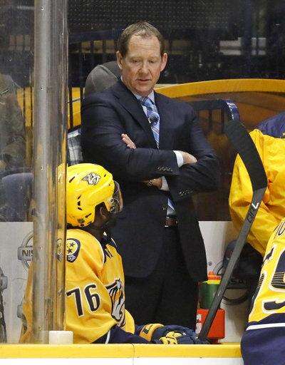 FILE - In this Nov. 23, 2016, file photo, Nashville Predators assistant coach Phil Housley talks to defenseman P.K. Subban (76) during the first period of an NHL hockey game, in Nashville, Tenn. Three of the six NHL coaching vacancies this offseason were filled by first-timers as teams look to find the next new idea rather than recycling the past. (AP Photo/Mark Humphrey, File) The Associated Press