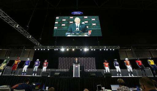 Bowlsby took a moment during his opening comments to recognize Bob Stoops, who suddenly retired as Oklahoma's coach last month. Stoops won 10 Big 12 titles and a national championship in his 18 seasons with the Sooners.