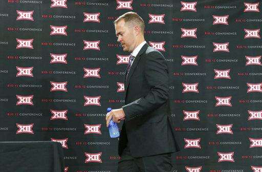 Oklahoma head coach Lincoln Riley walks to the dais before speaking to reporters during the Big 12 NCAA college football media day in Frisco, Texas, Monday, July 17, 2017. (AP Photo/LM Otero) The Associated Press