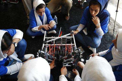 WASHINGTON (AP) - Their team shirts didn't say "Afghanistan" and their name badges were handwritten, not typed, suggesting the last-minute nature of their entry into the United States. But the Afghan girls competing Monday in an international robotics competition in Washington were clearly excited to be representing their nation.