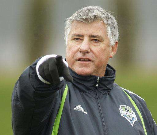 File-This Jan. 21, 2009, file photo shows Seattle Sounders soccer coach Sigi Schmid calling to his players, during training camp in Renton, Wash. The LA Galaxy fired coach Curt Onalfo on Thursday, July 27, 2017, just 20 games into his first season. The Galaxy hired veteran MLS coach Schmid to return to the struggling club. (AP Photo/Ted S. Warren, File) The Associated Press
