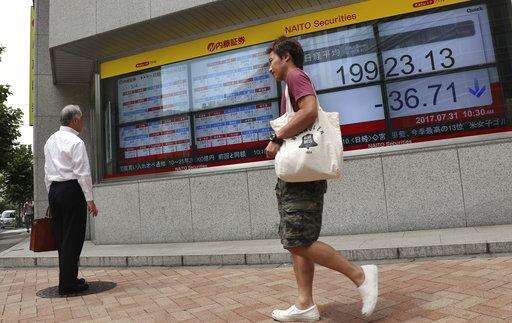 KEEPING SCORE: Japan's Nikkei 225 index slipped 0.1 percent to 19,946.32 and the Kospi in South Korea dropped 0.2 percent to 2,396.28. Hong Kong's Hang Seng index jumped 0.8 percent to 27,182.35 and the S&P ASX 200 of Australia gained 0.4 percent to 5,727.50, while the Shanghai Composite index edged 0.1 percent higher to 3,257.25. Shares in Southeast Asia were mostly lower.