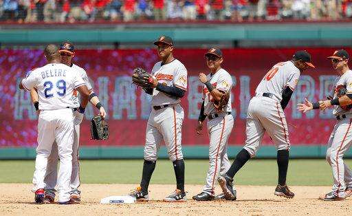 Orioles closer Zach Britton came on with two on in the ninth, striking out Mazara and getting Beltre on a grounder to end the game. Britton has converted an AL-record 57 consecutive save opportunities, eight this season.