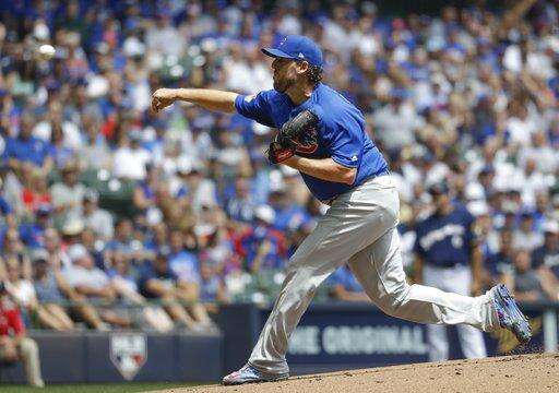 Chicago Cubs starting pitcher John Lackey throws during the first inning of a baseball game against the Milwaukee Brewers Sunday, July 30, 2017, in Milwaukee. (AP Photo/Morry Gash) The Associated Press